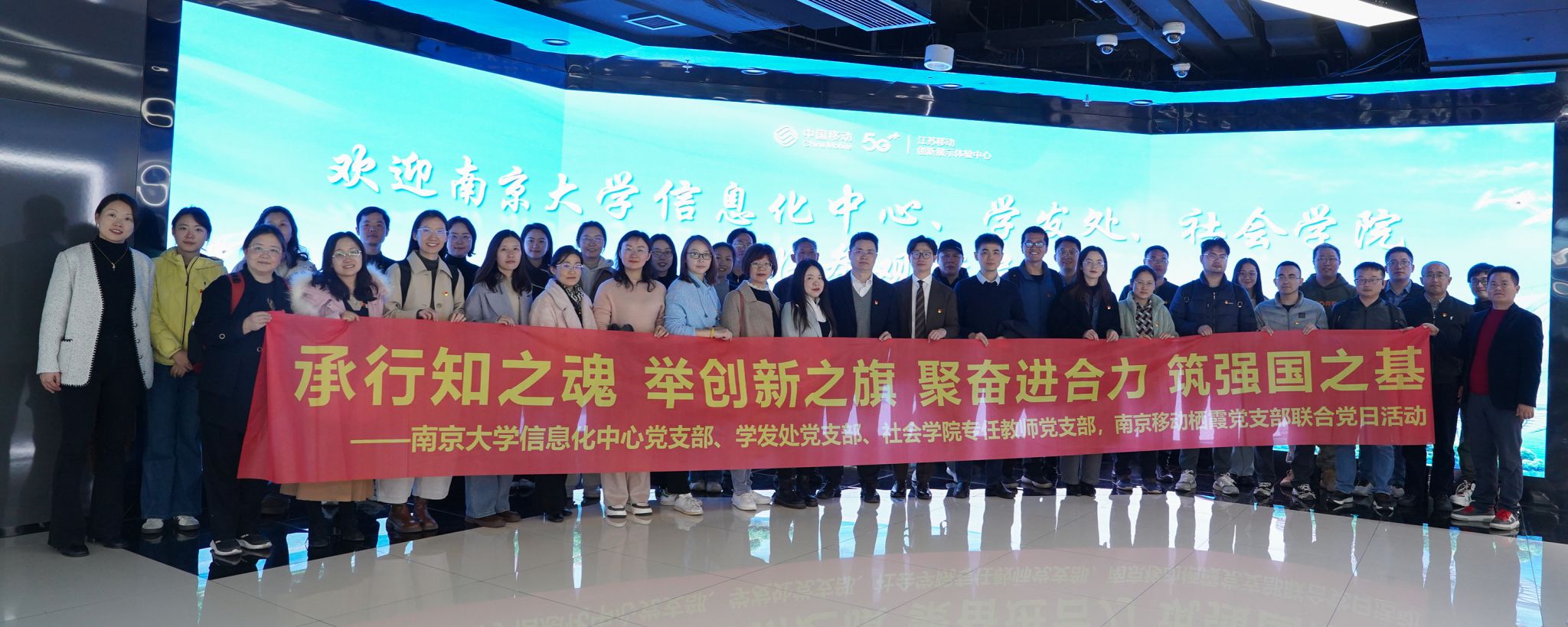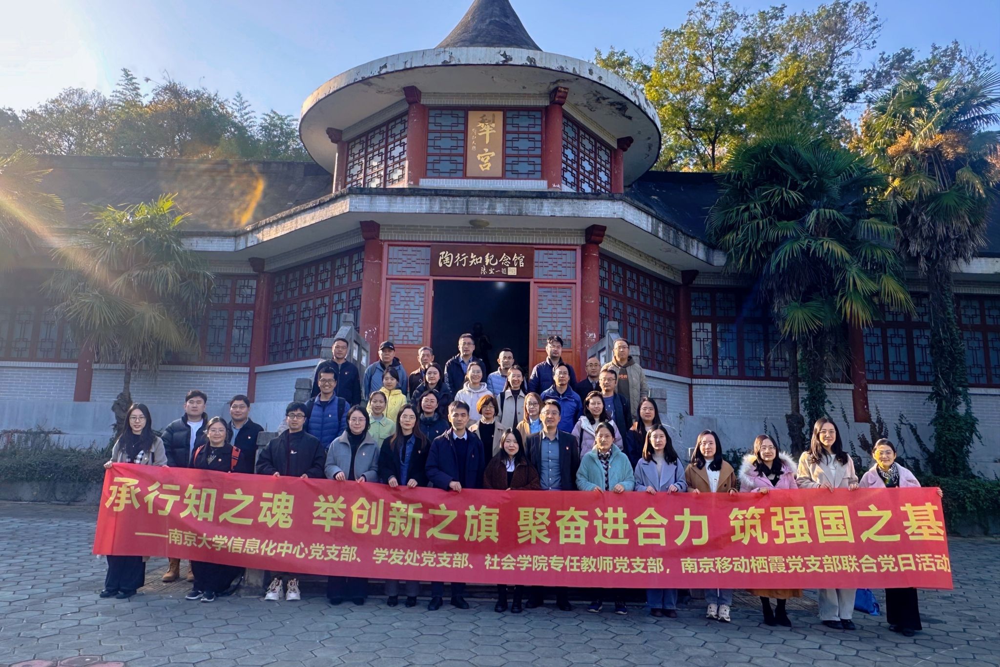 为深入贯彻落实教育强国战略部署,凝聚跨领域协同奋进力量,扎实服务大学“双一流”建设新征程,以实际行动诠释“教育强国,奋进有我”的责任担当与使命初心,11月26日,大学信息化中心支部、学科建设与发展规划处支部、社会学院专任教师支部与移动栖霞支部携手联动,共同开展了主题鲜明、内涵深厚、形式丰富的联合支部共建活动。本次活动以“承行知之魂、举创新之旗、聚奋进合力、筑强国之基”为核心主线,通过参访陶行知纪念馆与移动展示体验中心,架起教育精神传承与科技创新实践的沟通桥梁,实现了思想洗礼与实践赋能的双向奔赴。